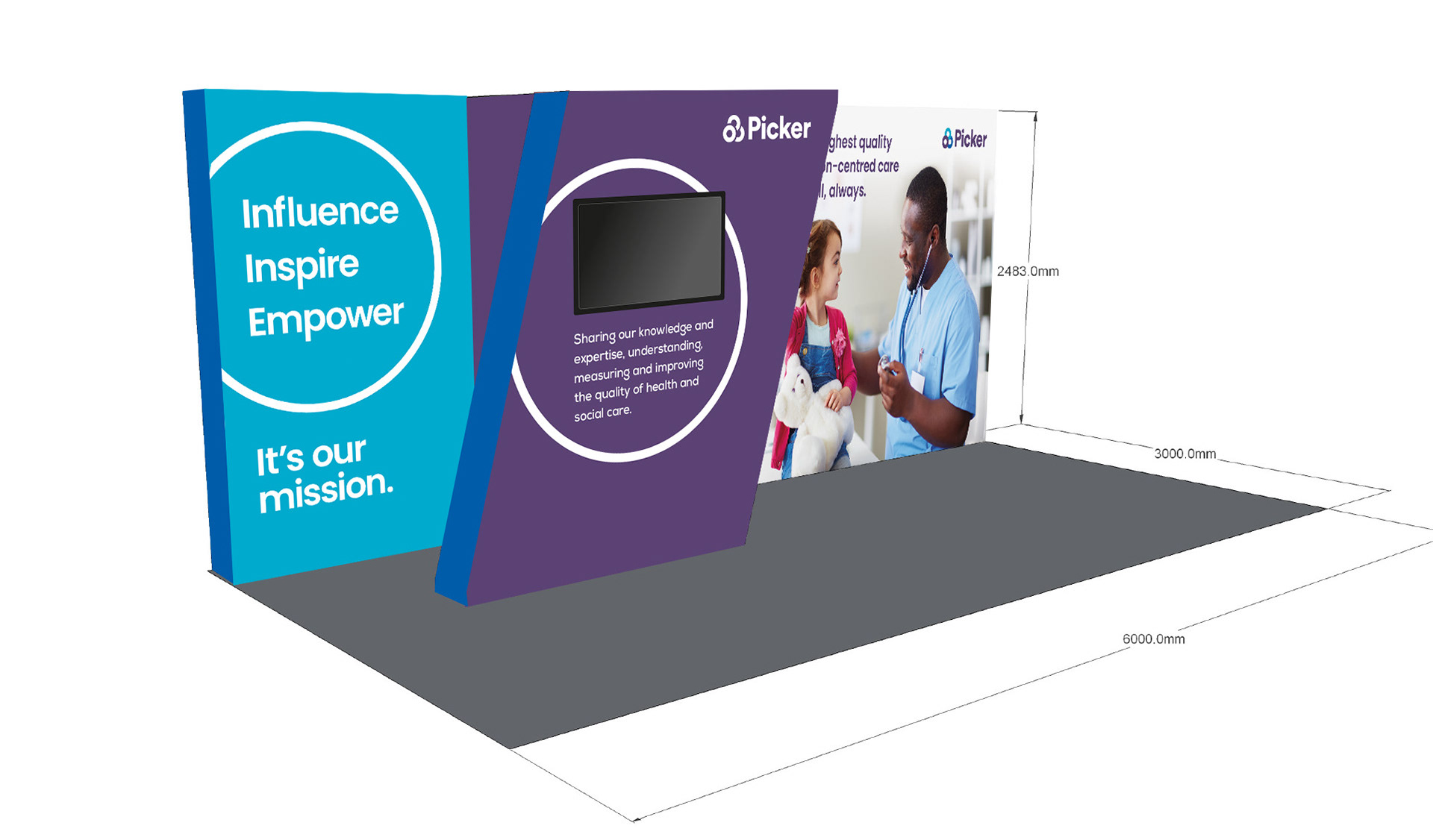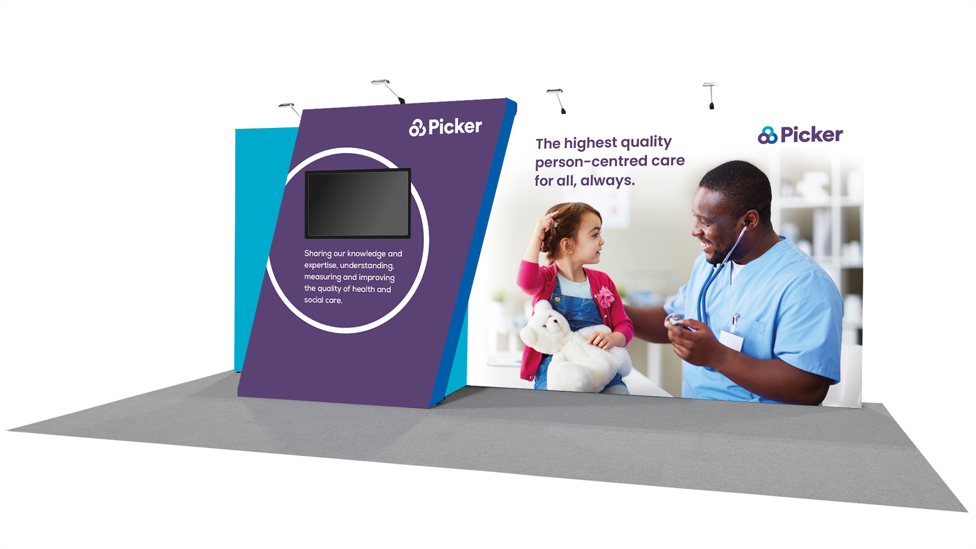 Exhibition stand for Picker, a public sector healthcare organisation supporting the NHS
